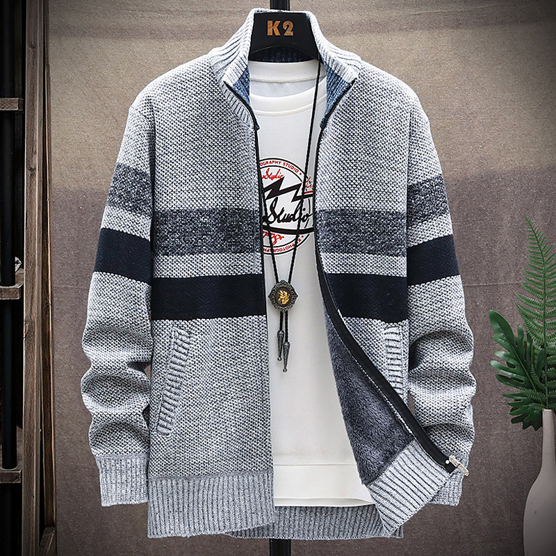 Men's Sweater Cardigan Zip Sweater Sweater Jacket Fleece Sweater Knit Knitted Color Block Stand Collar Stylish Outdoor Home Clothing Apparel Winter Fall Blue Dark Gray M L XL