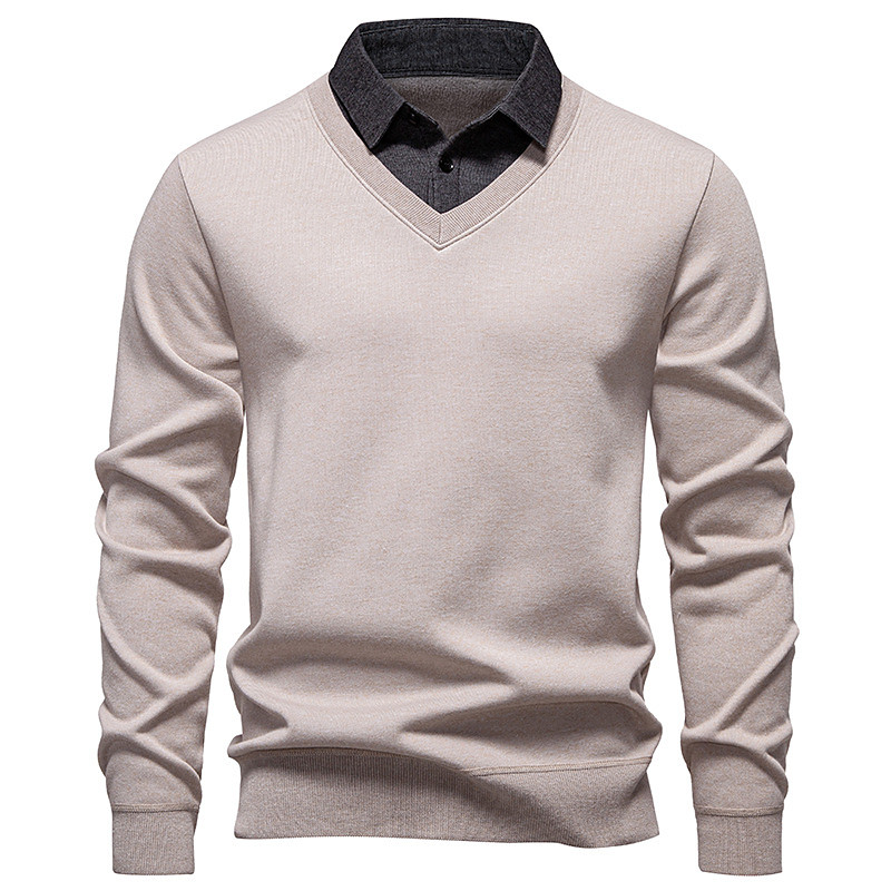 Men's Sweater Pullover Sweater Jumper Ribbed Knit Regular Tops 2 in 1 Knitted Plain Turndown Knitwear Contemporary Casual Daily Wear Clothing Apparel Spring Fall Black Navy Blue M L XL