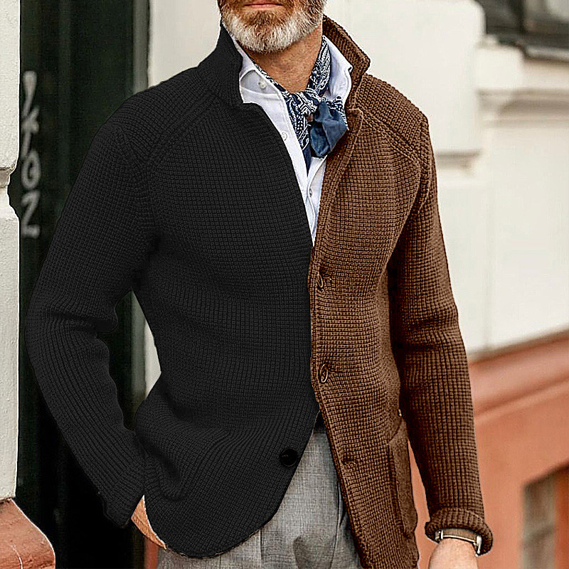 Men's Sweater Cardigan Sweater Ribbed Knit Regular Tops Button Up Patchwork Plain Stand Collar Vacation Fashion Casual Daily Wear Clothing Apparel Fall Winter Blue Black M L XL