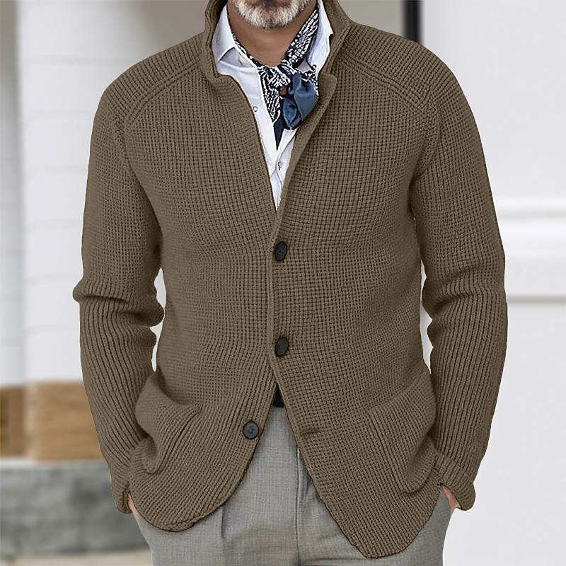 Men's Sweater Dress Sweater Cardigan Sweater Waffle Knit Cropped Knitted Stand Collar Clothing Apparel Fall Winter Navy Blue Brown XS S M