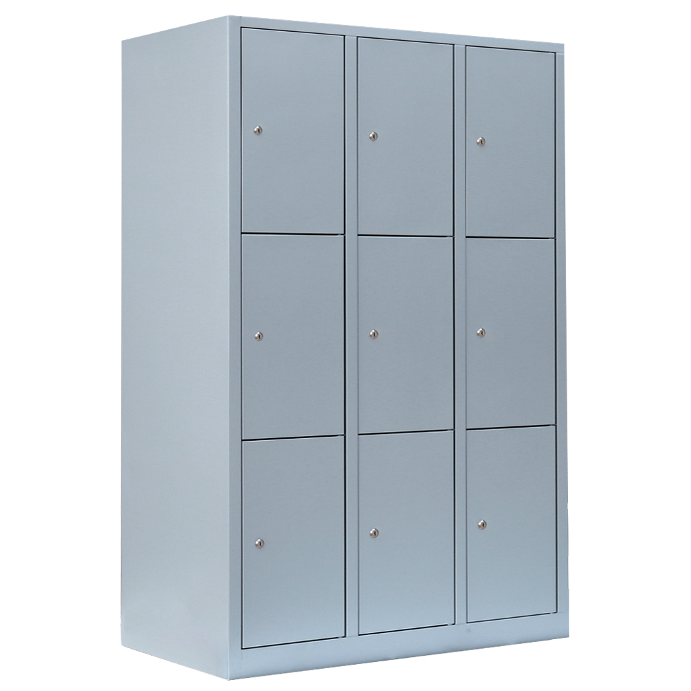 Lüllmann® Schließfachschrank, 3 Abteile, 9 Fächer, 1800 x 1185 x 500 mm, lichtgrau