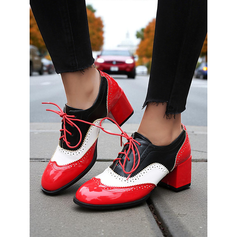 Women's Two-Tone Oxford Block Heel Shoes – Retro Lace-Up Brogues in Mint Green and Metallic for 1950s-Inspired Street Style, Daily Outfits, and Casual Events