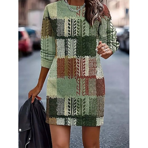Per donna Mini Abito Abito in maglia Abito a Tubino Festa Casual Scuola Formale All'aperto Vestibilità regolare Floreale Grafico Plaid Manica Lunga Girocollo Rosso Blu Verde Grigio Primavera Autunno