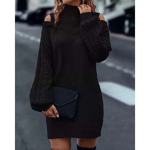 Per donna Mini Abito Abito in maglia Elegante Moda Moderno Quotidiano Ufficio Ferie Vestibilità regolare Semplice Manica Lunga Collo Alto Nero Verde Cachi Grigio Autunno Inverno