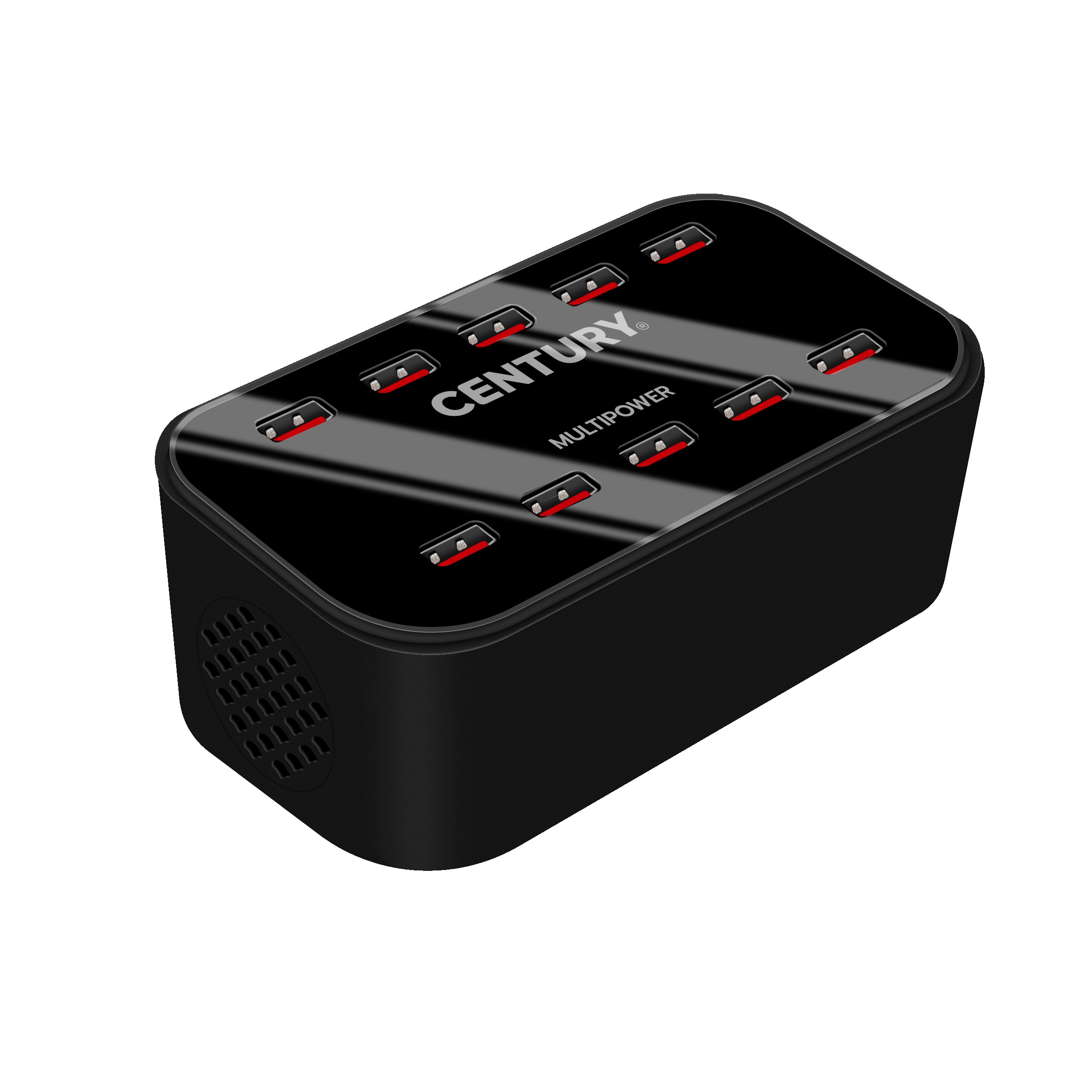 Century Italia Multipower - oplaadstation met 10 USB-poorten - 15 x 7,5 x 5,5 cm - zwart
