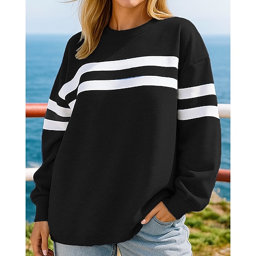 Per donna Felpa pullover Top casual Manica Lunga Top Athleisure Autunno A righe Cotone Leggero All'aperto Viaggio Sportivo abbigliamento sportivo Abbigliamento sportivo Nero Blu Blu scuro