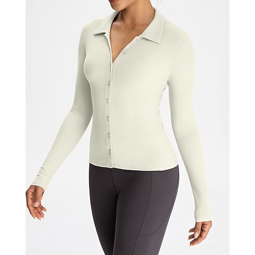 Per donna Tinta unita Maglia da tennis Top sportivo Elegante Bottoni Elastico Traspirante Golf Pickleball Yoga Collo ripiegato Top Inverno Nero Bianco Rosa Abbigliamento da tennis