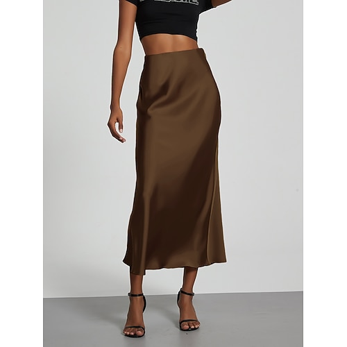 Per donna Gonna Aderente Elegante Moda Midi Vita Alta Gonne Semplice Micro-elastico Feste Streetwear Nero Vino Cachi Grigio scuro Primavera Raso Poliestere