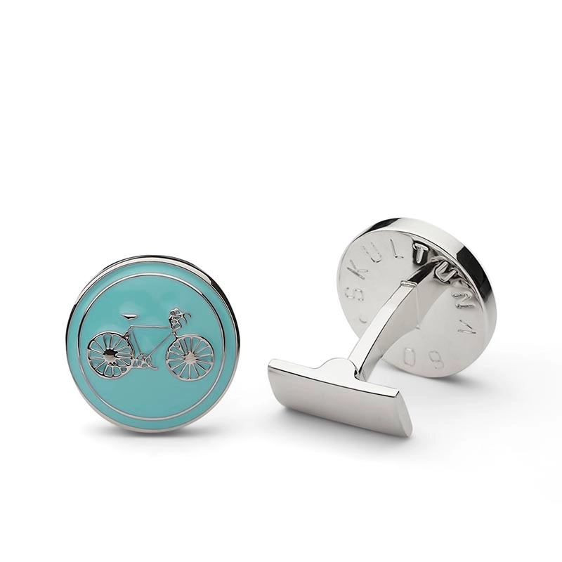 Manschettknappar Themocracy, Bike Light Blue & Silver
