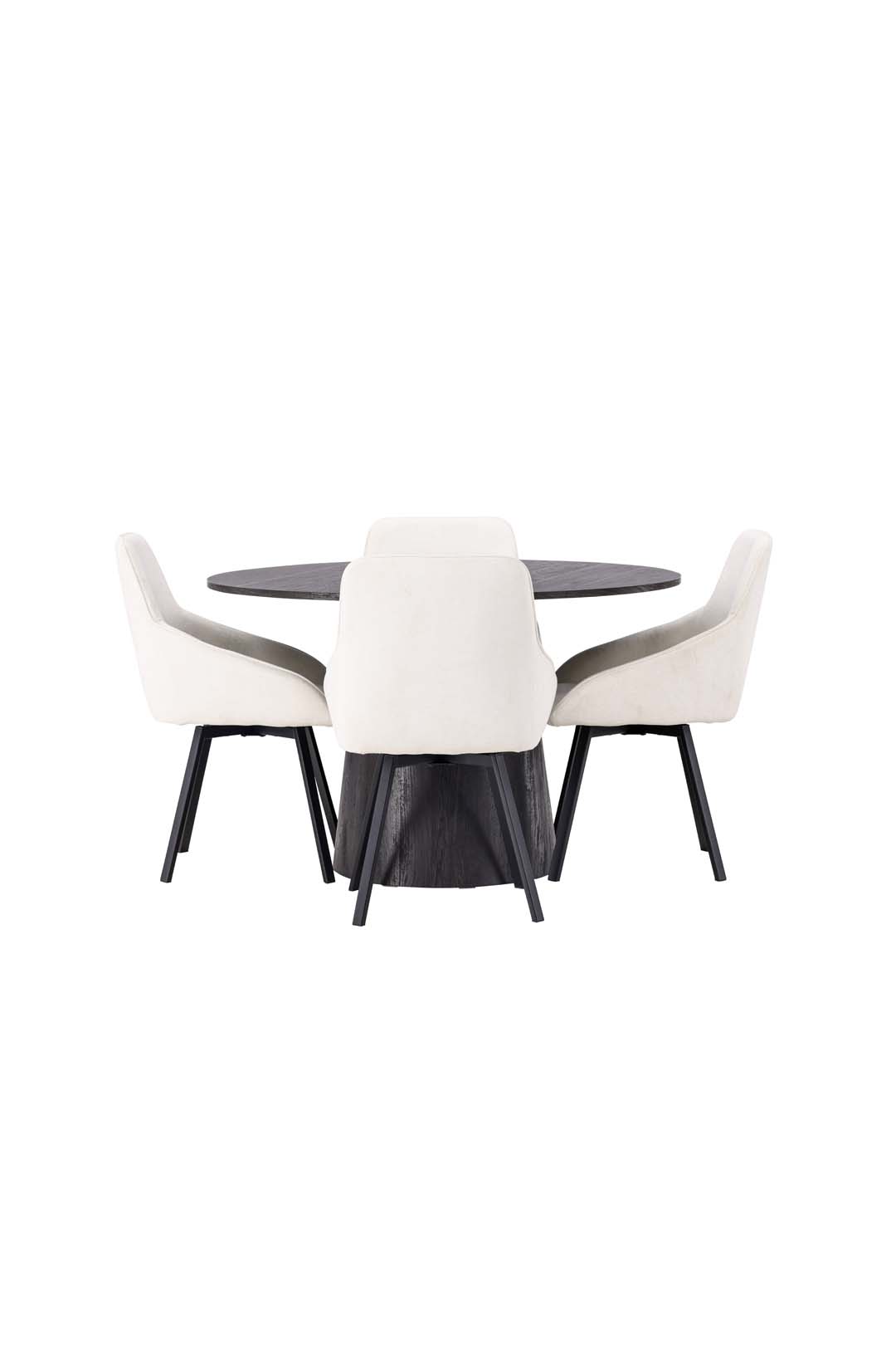 Lanzo spisebordssæt bord mocca og 4 Rosie stole beige