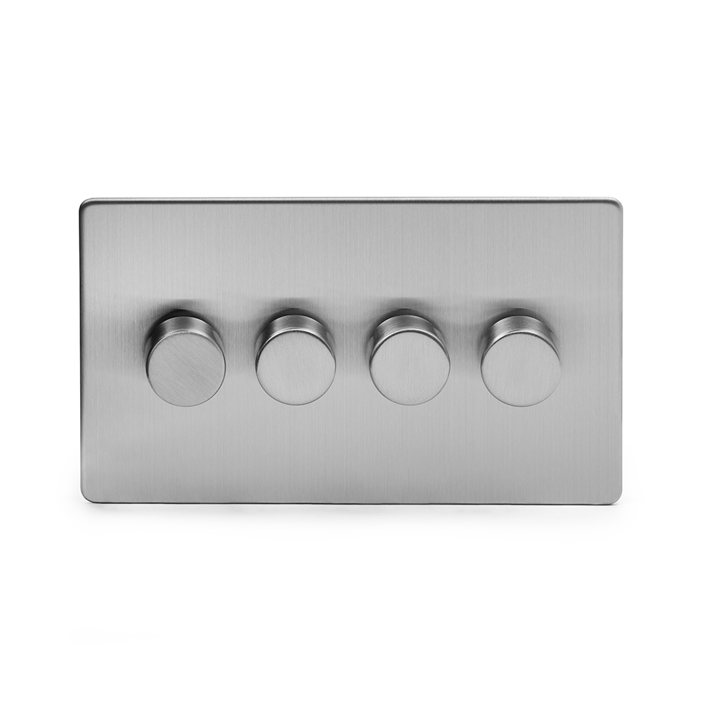 Soho Lighting Brushed Chrome 4 Gang 2 Way Trailing Edge Dimmer Switch Screwless 100W LED (150w Halogen/Incandescent) - Size: 86mm x 146mm x 4.5mm