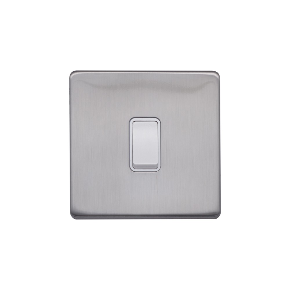 Lieber Brushed Chrome 10A 1 Gang 2 Way Switch - White Insert Screwless - Size: 86mm x 86mm x 2 mm