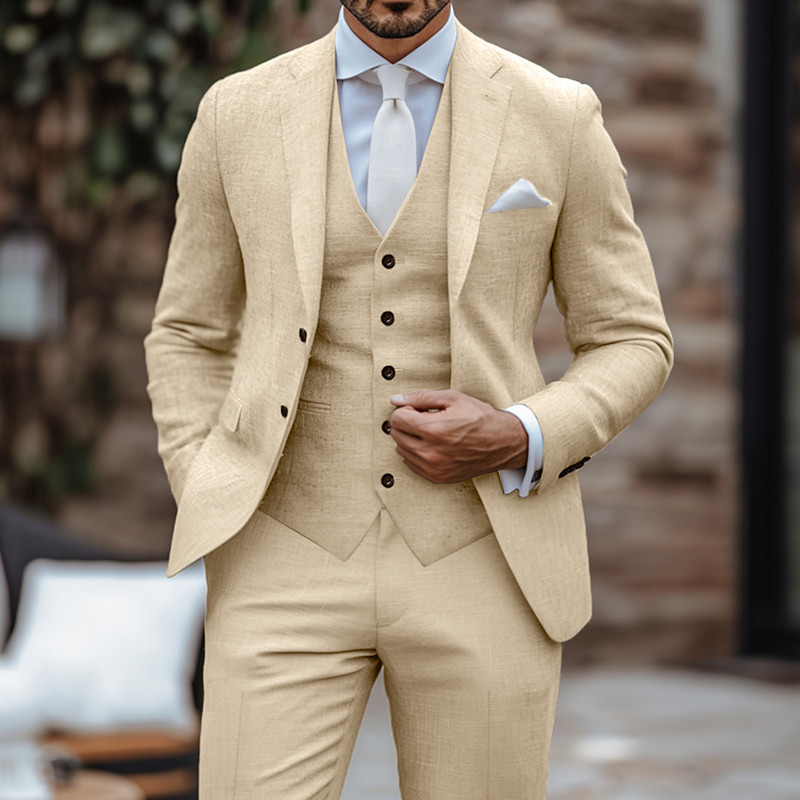 Men's Linen Suits Beach Wedding Summer Suits Solid Colored 2 Piece Tailored Fit One-Button Champagne Beige