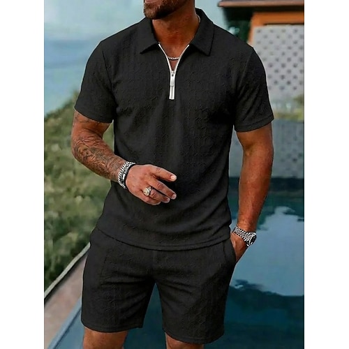 Per uomo Geometria Polo Maglia da golf Completo da polo Manica Corta Camicia Collo ripiegato Streetwear Casuale Nero Giallo Blu Azzurro Cerniera 2 Pezzi Abbigliamento Moda Designer Casual Traspirante