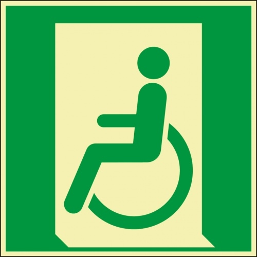 Schild I PERMALIGHT power langnachleuchtend Rettungszeichen Rettungsweg Rollstuhlfahrer links, Alu, 200x200mm, ISO 7010