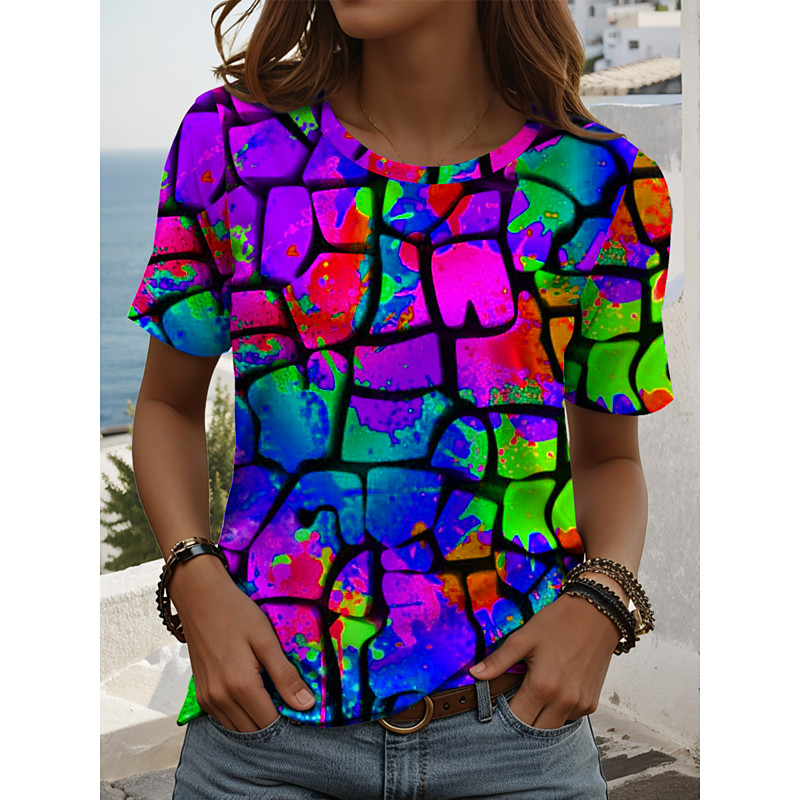 LGBT Pride Parade Pride Raindow Women's T Shirt Graphic Geometric Striped Vintage Stylish Classic Short Sleeve Crew Neck Regular Tops Daily Print Yellow Red Purple Summer Spring
