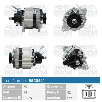 Laturi 14V 70A Meat & doria 5520441 - ford maverick, nissan terrano i, terrano ii - OE 23100-0F000, 23100-43G04, 23100-43G05