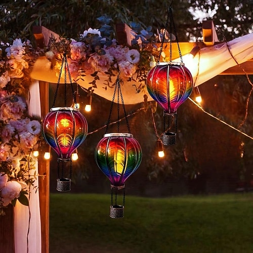 1 x Solar-Heißluftballonlampe aus Eisen für den Außenbereich, mehrfarbiges Flammenlicht mit Farbverlauf für Hof, Garten, Weg, Rasen, Hochzeit, Festival- und Partyatmosphäre