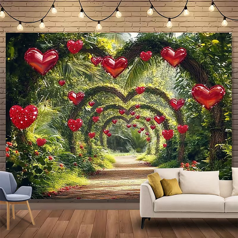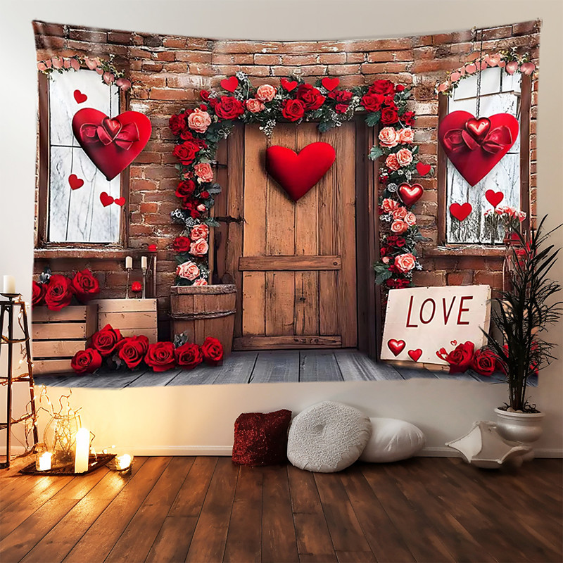 Valentine's Day Tapestry Banners Blanket Rose Love Heart Cute Romantic 3D Party Living Room Shooting Backgrounds Marriage Proposal Decoration Home Decor