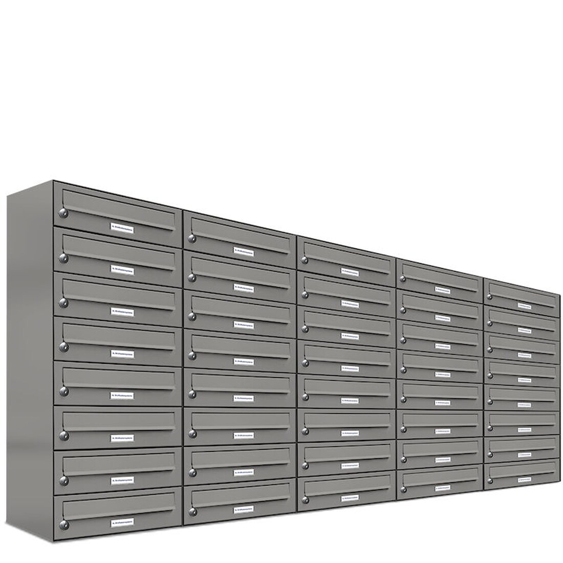 AL Briefkastensysteme 40 Fächer Premium Wand Briefkasten Anlage in RAL 9007 Aluminium Grau, Post A4, robust, wetterfest, Artikelnummer: 132P40EA5P9007