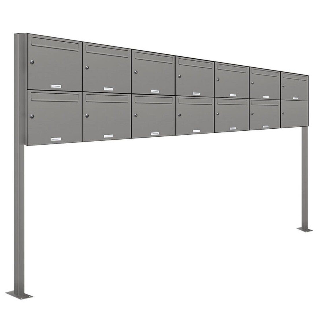 AL Briefkastensysteme 16 Fächer Premium Stand Briefkasten Anlage in RAL 7016 Anthrazit Grau, Post A4, robust, wetterfest, Artikelnummer: 132P16S2P7016