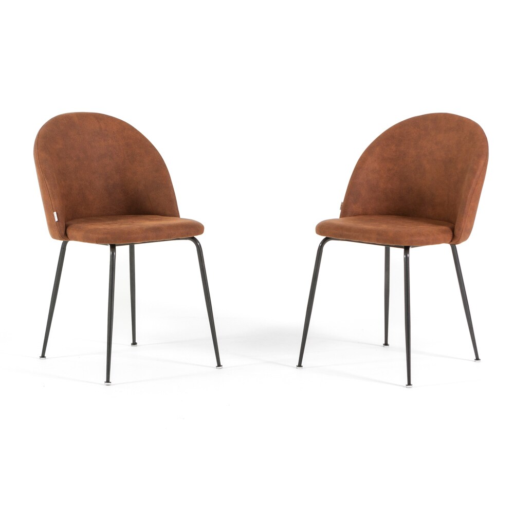 RATTATAN Set aus 2 Innenstühlen aus Kunstleder mit Metallbeinen, elegantes Design für Küche, Esszimmer, Bar und Restaurant – Sara – Terrakotta/Dunkelgrau