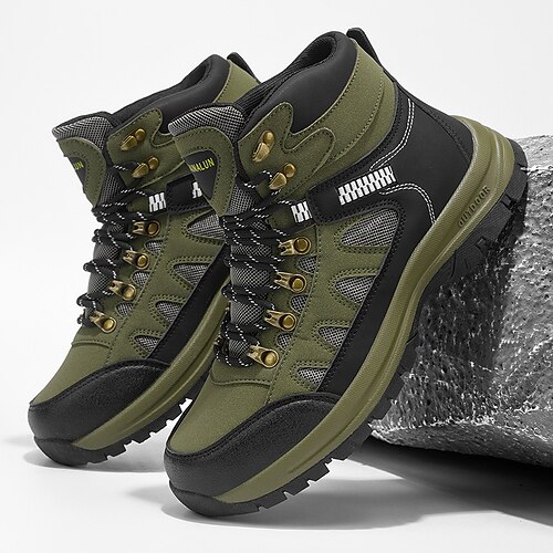 Per uomo Stivali Stivali da Lavoro Scarpe da trekking Camminata Sportivo Quotidiano All'aperto PU Confortevole Stivali a Metà Polpaccio Allacciatura Nero Cachi Primavera Autunno