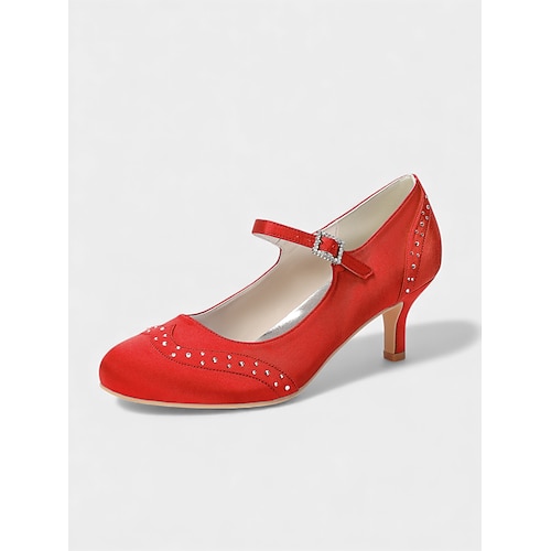 Scarpe da donna con tacco a spillo in pizzo bordeaux, modello Mary Jane, con tacco a gattino e fibbia in strass - eleganti scarpe retrò anni '20 per donne, ideali per matrimoni, feste da ballo