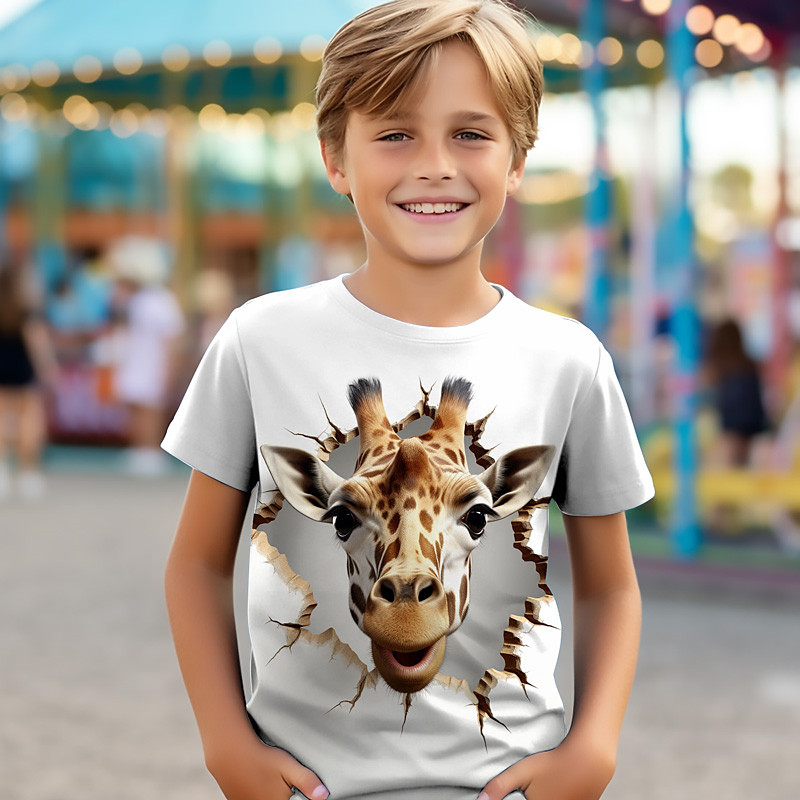 Boys' 3D Lion Giraffe Wolf Tee Shirts Short Sleeve 3D Print Summer Active Sports Fashion Kids 3-12 Years Crew Neck Outdoor Casual Daily Regular Fit