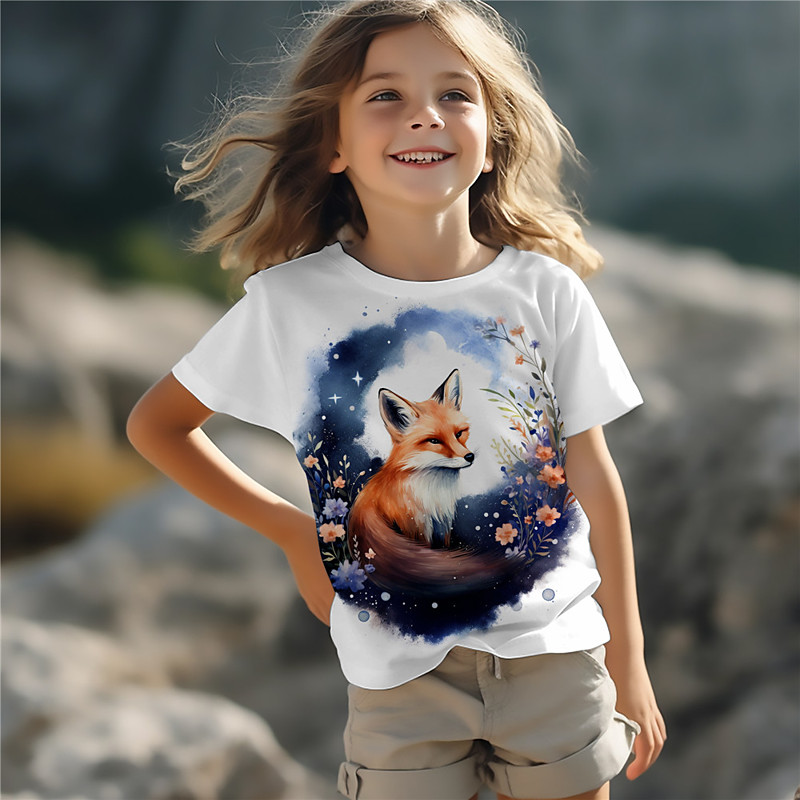 Girls' 3D Cartoon Fox Tee Shirts Short Sleeve 3D Print Summer Active Fashion Cute Kids 3-12 Years Crew Neck Outdoor Casual Daily Regular Fit