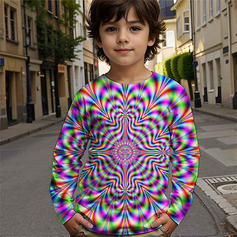Boys' 3D Graphic Geometric Optical Illusion Sweatshirt Long Sleeve Spring Fall Fashion Basic Kids 4-12 Years Crew Neck Outdoor Casual Daily Regular Fit