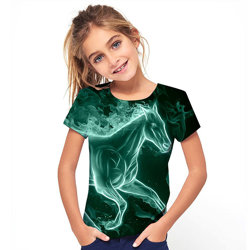 Girls' 3D Horse T shirt Tee Short Sleeve Summer Spring Fashion Basic Kids 4-12 Years Crew Neck Outdoor Casual Daily Regular Fit