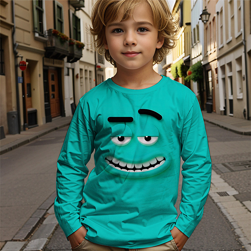 Boys Cartoon Funny Smile Face T shirt Tee Long Sleeve 3D Print Fall Winter Fashion Basic Kids 4-12 Years Crew Neck Outdoor Casual Daily Regular Fit