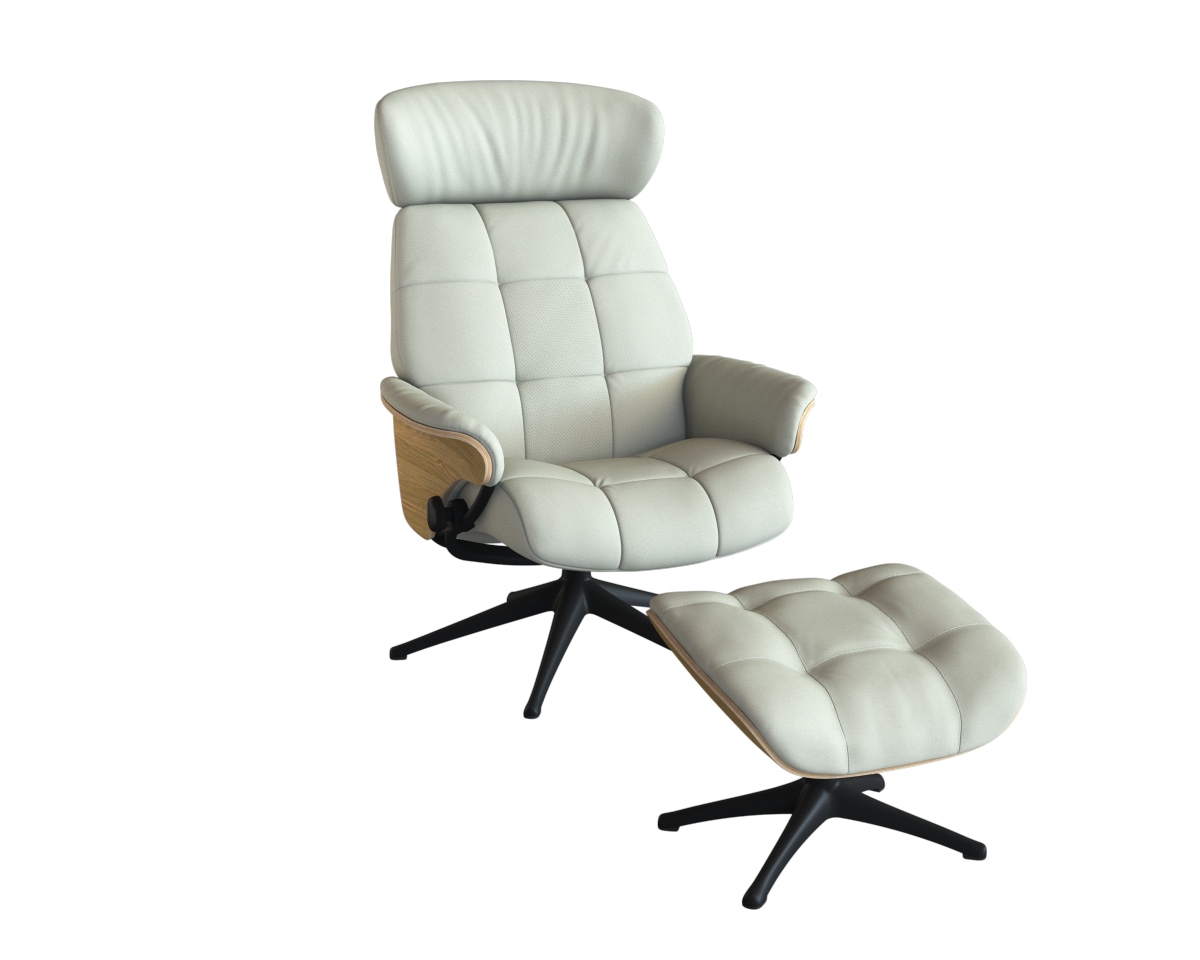 Relaxsessel FLEXLUX "Skagen, Funktionssessel, Premium-Komfort, Armlehnen, Drehbar, Scandi", weiß (warm weiß), B:82cm H:112cm T:87cm, 100% Echteder, Sessel, Rücken- und Kopfteilverstellung, Fuß Schwarz, Armlehne Eiche, Drehbar