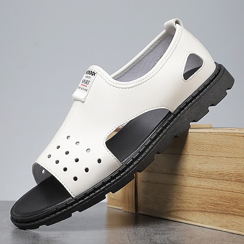 sandali casual bianchi da uomo slip-on – scarpe estive traspiranti da esterno per spiaggia, vacanze e uso quotidiano