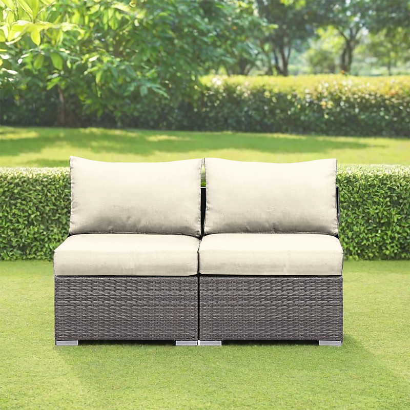 2-Piece Patio Armless Sofa Cover Set, Outdoor Sectional Sofa, All-Weather Grey PE Wicker Rattan Conversation Sofa, Outdoor Loveseat, Patio Seating for Balcony Garden Pool