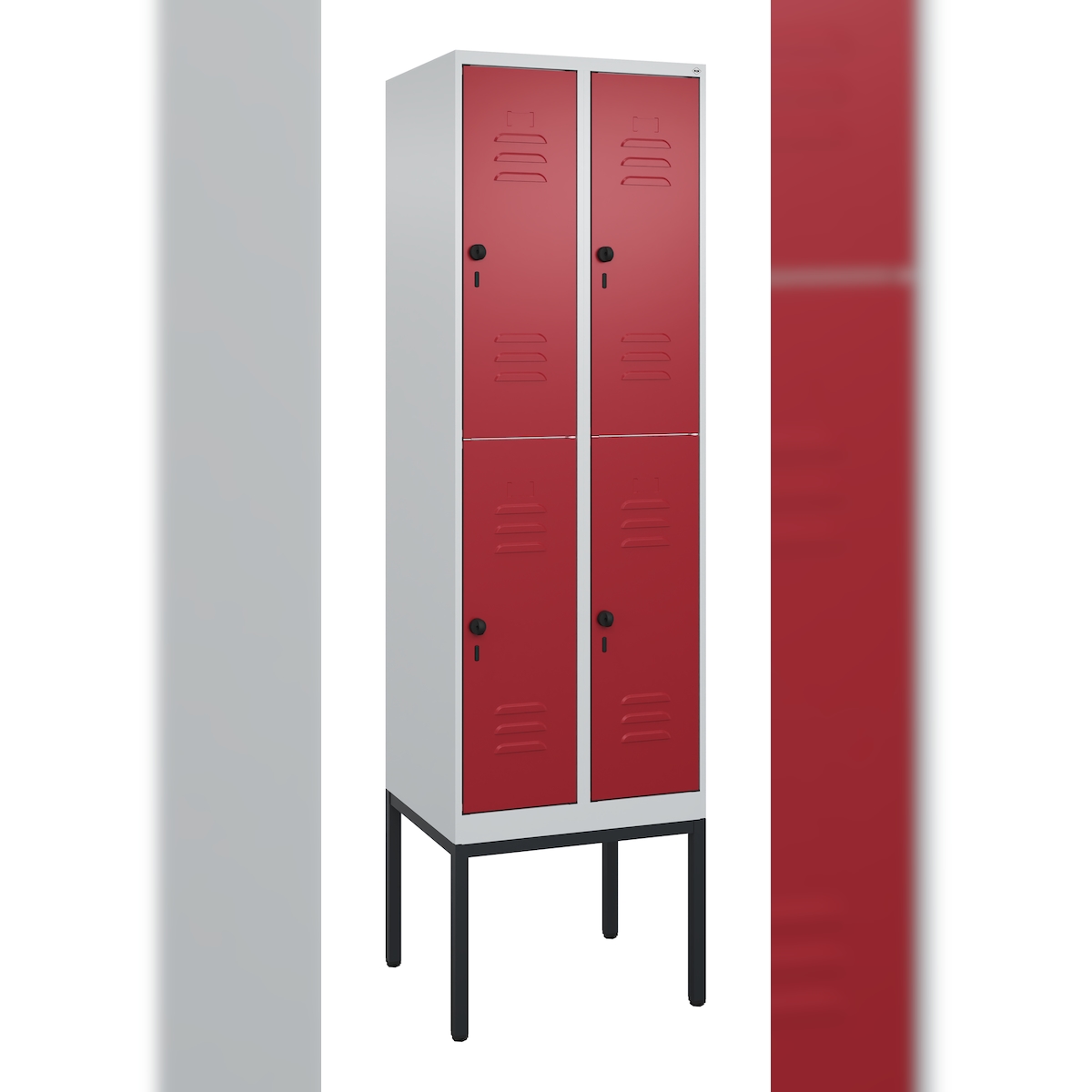 C+P Spind Classic PLUS, Gestell, 4 Abteile, HxBxT 212x60x50cm, Sicherheitsdrehriegel, Hellgrau/Rubinrot von PROREGAL