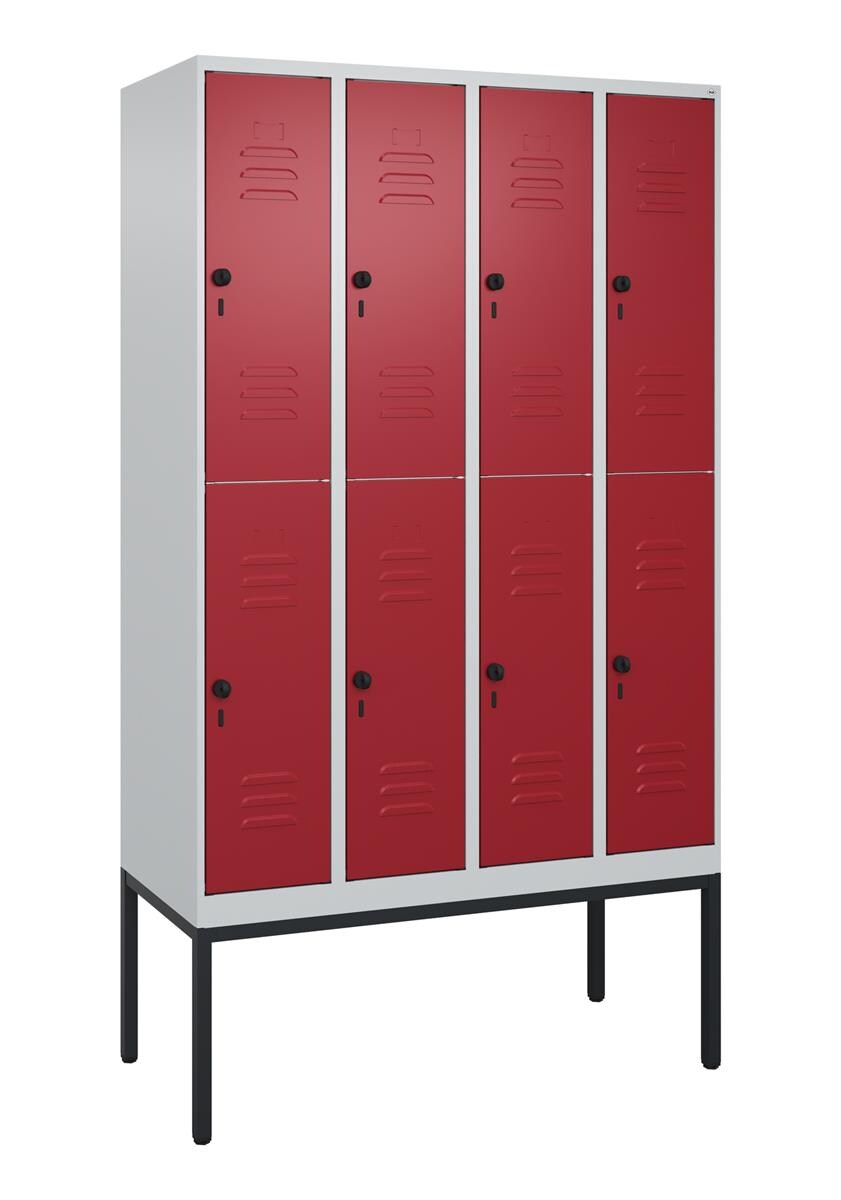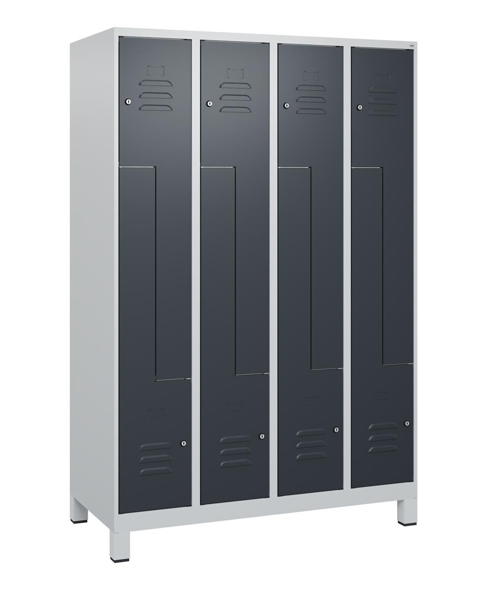C+P Spind Classic PLUS, Füßen, 4 Abteile, HxBxT 195x120x50cm, Zylinderschloss, Hellgrau/Anthrazit von PROREGAL