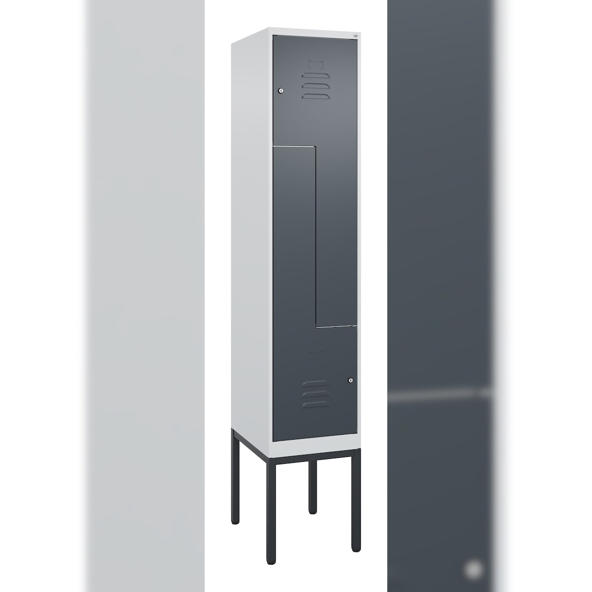 C+P Z-Spind Classic PLUS, Sockel, 2 Abteile, HxBxT 195x40x50cm, Sicherheitsdrehriegel, Anthrazit von PROREGAL
