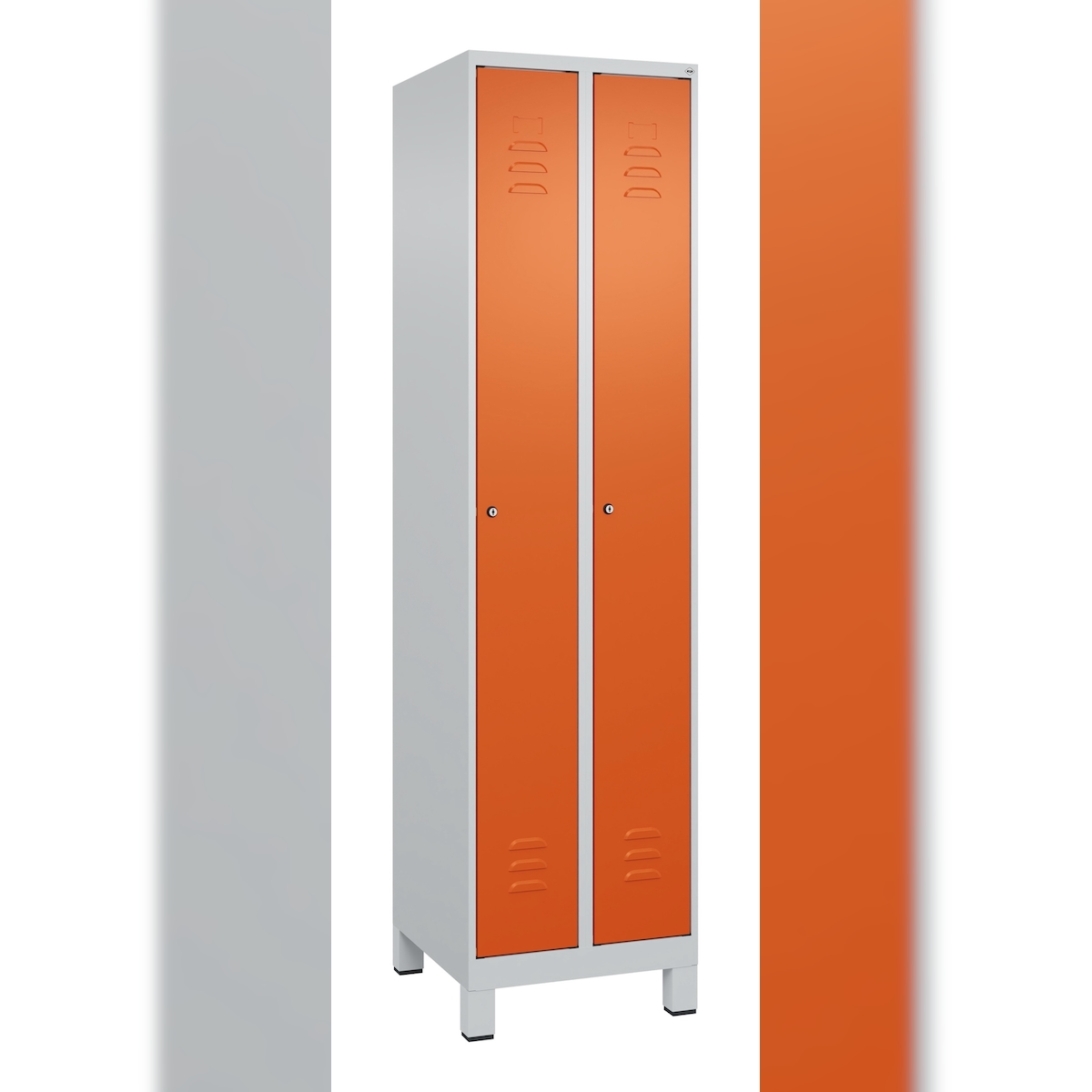 C+P Spind Classic PLUS, Füßen, 2 Abteile, HxBxT 195x50x50cm, Zylinderschloss, Hellgrau/Reinorange von PROREGAL