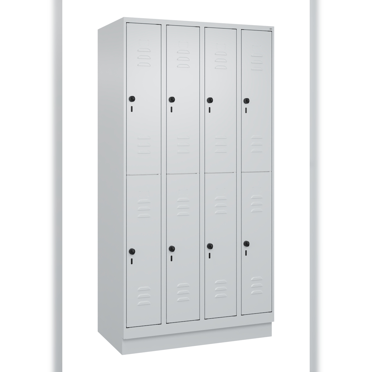 C+P Spind Classic PLUS, Sockel, 8 Abteile, HxBxT 195x100x50cm, Sicherheitsdrehriegel, Hellgrau/Hellgrau von PROREGAL