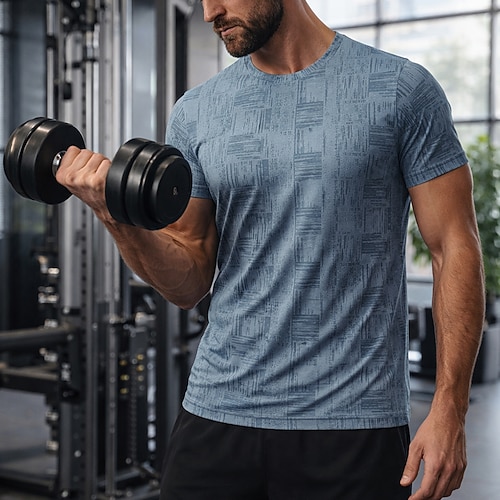 Per uomo T-shirt da corsa Maglia a compressione Maglia atletica Sport in alto Manica Corta Top Estate A quadri Asciugatura Rapida Traspirante Allenamento in Palestra Camminata Jogging abbigliamento