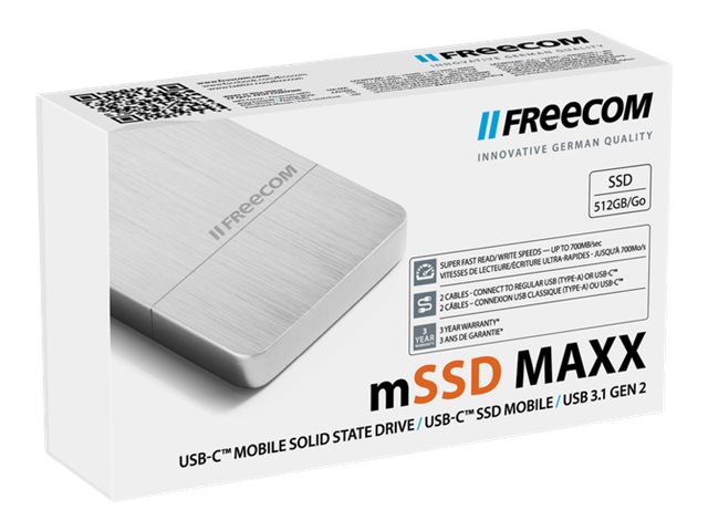 Freecom mSSD MAXX - SSD - 512 GB - ekstern (bærbar) - USB 3.1 Gen 2 - børstet aluminium