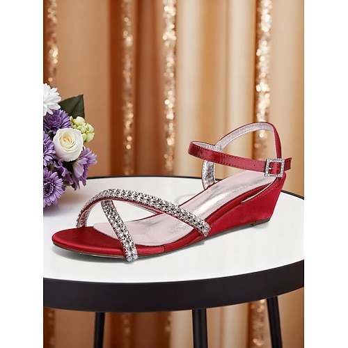 sandali con zeppa in strass blu da donna - eleganti tacchi a spillo con cinturino alla caviglia e punta aperta per feste ed eventi serali