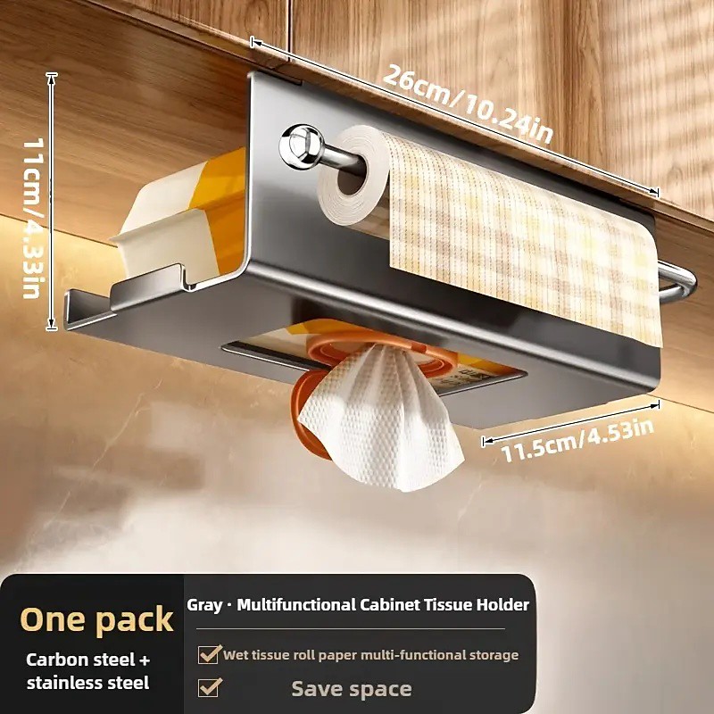 Mountain Paper Towel Holder Countertop with Mango Wood Round Base and Metal Holder, Wood and Metal Paper Towel Holders Countertop, Spiral Design Decorative Storage Box for Bathroom Storage