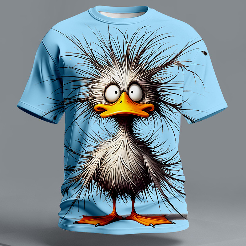 Mens Funny Crazy Duck T Shirt Big Eyes Messy Feathers Graphic Tees Teal Green Short Sleeve Summer Casual Tops Novelty Animal Print Clothing Apparel S M L XL XXL XXXL