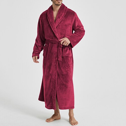 Per uomo Abbigliamento da Casa Camicia da Notte Accappatoio Semplice Elegante Comfort Casa Quotidiano Cotone Calore Termico Traspirante Scollo a V Manica Lunga Autunno Inverno Nero Vino