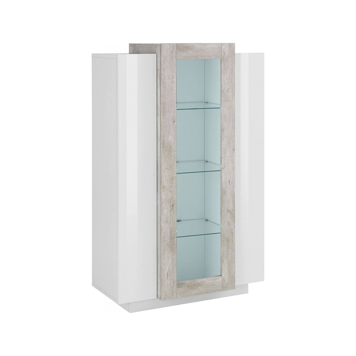 Vitrine GOODPRODUCT "Cross, Höhe 183,5 cm, moderne grifflose Standvitrine mit 3 Türen", braun (congo), B:79,5cm H:183,5cm T:40cm, FSC-zertifizierter Holzwerkstoff, Glas, Melamin, Schränke, Vitrine, Hochschrank mit viel Stauraum, Glastür und verstellbaren