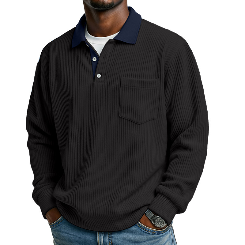 Men's Corduroy Shirt Textured Casual Business Lapel Classic Long Sleeve Vintage Fashion Color Block Pocket Warm Fall Winter Regular Fit Black White Dark Red Light Green Light Blue Navy Blue Corduroy