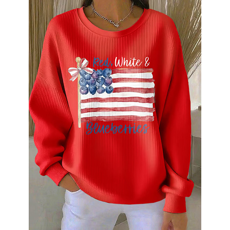 Women's Pullover Graphic Letter Warm Classic Casual Long Sleeve Crew Neck Regular Tops Casual Home Street Print Blue Light Blue Black White Red Spring Fall Winter